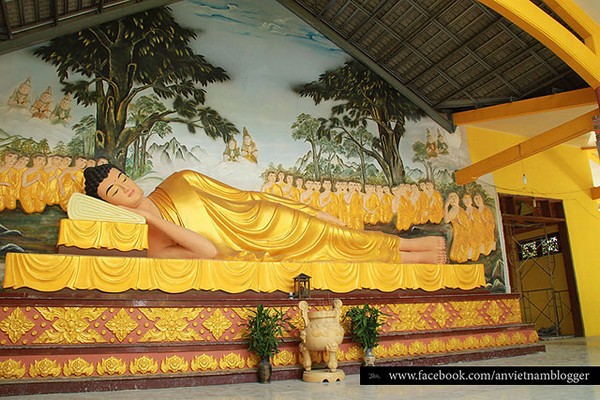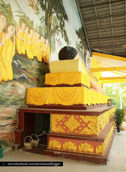 | Phía sau điện Phật là tượng Phật nằm cũng khá lớn. |
