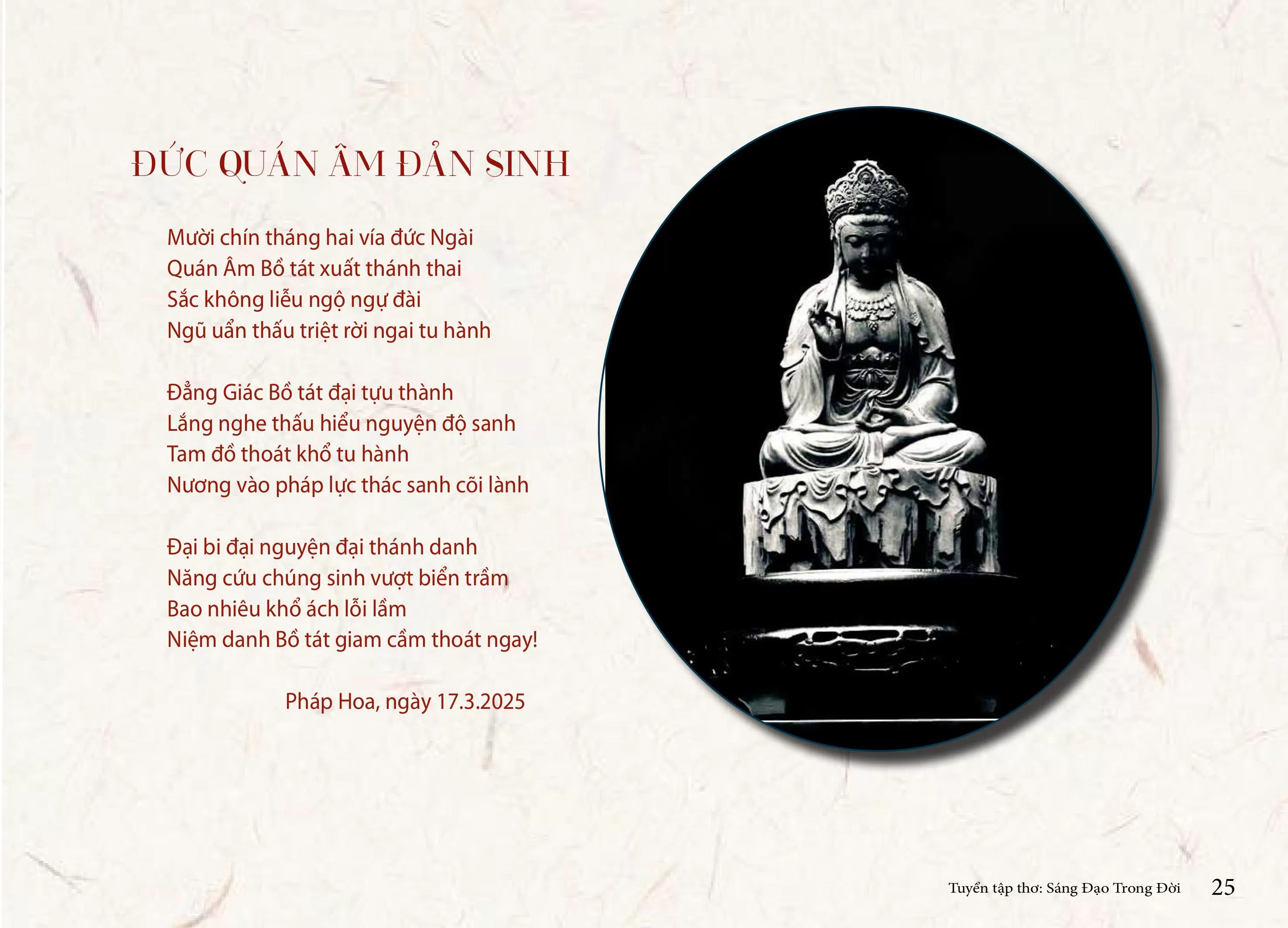Nguồn: Tuyển tập thơ "Sáng Đạo trong đời" tập 2