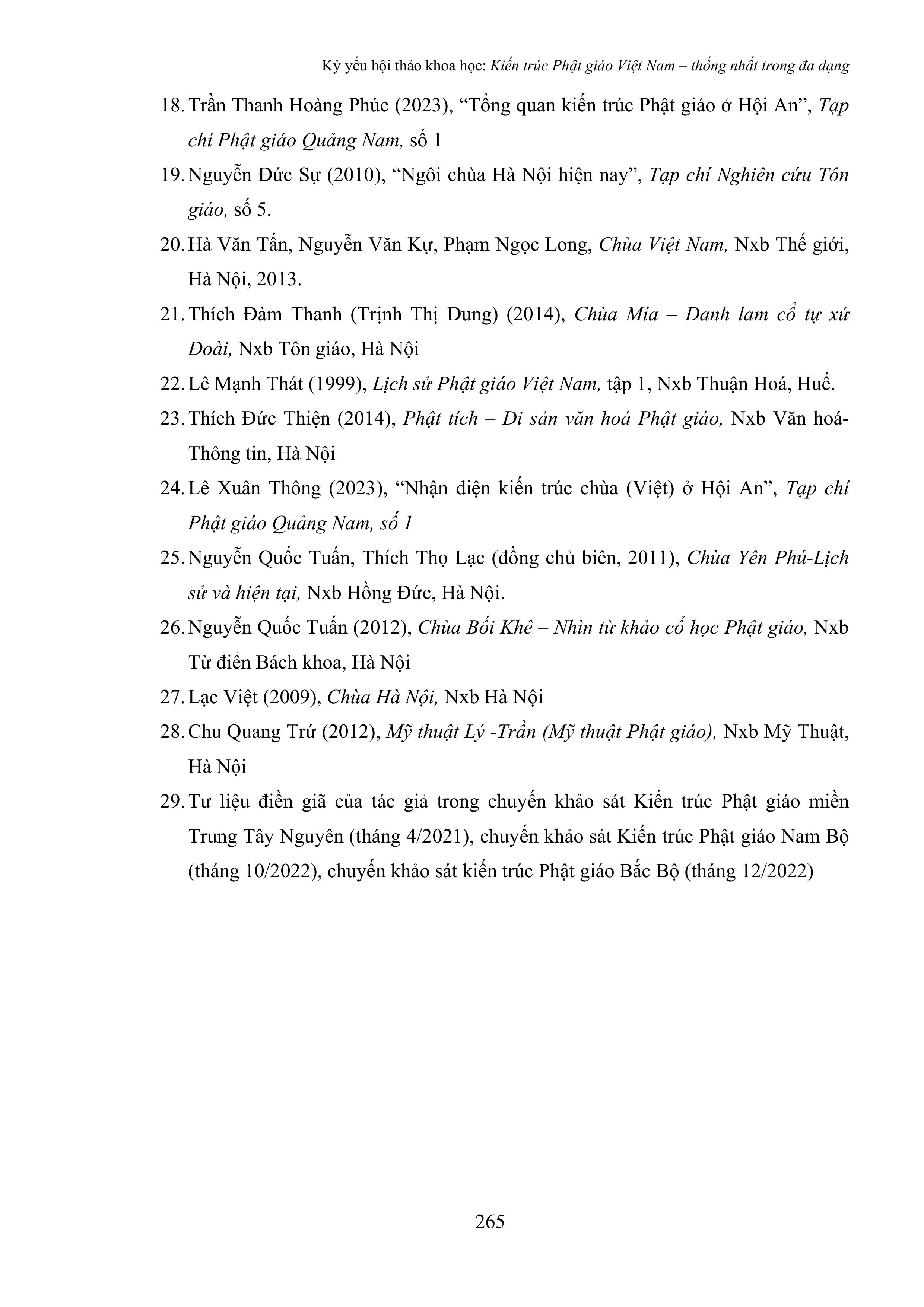 Nguồn: Kỷ yếu Hội thảo Khoa học Kiến trúc Phật giáo Việt Nam:"Thống nhất trong đa dạng"