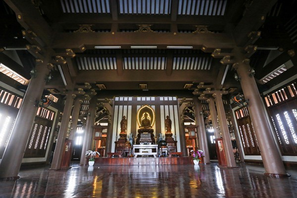 | Chánh điện của chùa được mang tên "Phật đường tỉnh thức" với kết cấu chủ đạo làm bằng gỗ, là nơi tụng kinh lễ bái, tọa thiền của các chư tăng, phật tử. |