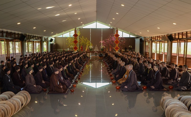 Khóa tu có hơn 300 hành giả tham dự, trong đó có 100 vị (60 Tăng, 40 Ni) đến từ Việt Nam và Tăng Ni sinh du học các nước trở về tham dự, cộng với 200 vị xuất gia thường trú tại Làng; ngôn ngữ sử dụng chính là tiếng Việt, bắt đầu từ ngày 17 đến 22-3-2018, dưới sự chứng minh của Thiền sư Thích Nhất Hạnh.