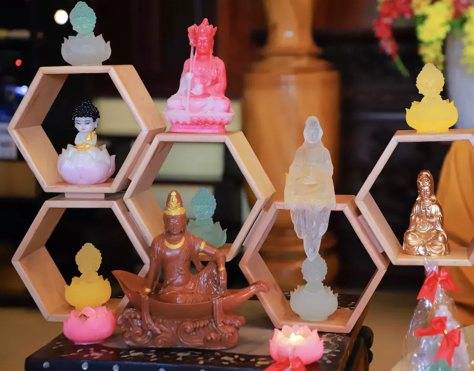 - 10.000 tượng Phật: được chế tác thủ công bởi Đạo tràng Phật tử Tâm Như Hạnh, mang hình tượng Đức Phật Bổn Sư Thích Ca Mâu Ni, là Pháp bảo gửi gắm tâm nguyện giác ngộ.