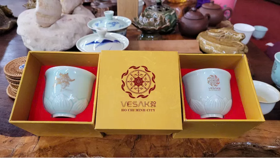 3.500 tách trà "Hương sen": Ý tưởng hình dáng được lấy từ hình tượng Hoa Sen là biểu tượng gắn liền với Phật giáo, cũng là quốc hoa Việt Nam. Hình dáng tách trà là hình dáng của búp Sen chớm nở, được nâng đỡ bởi những cánh Sen mềm mại điêu khắc nổi trên nền xương sứ trắng.