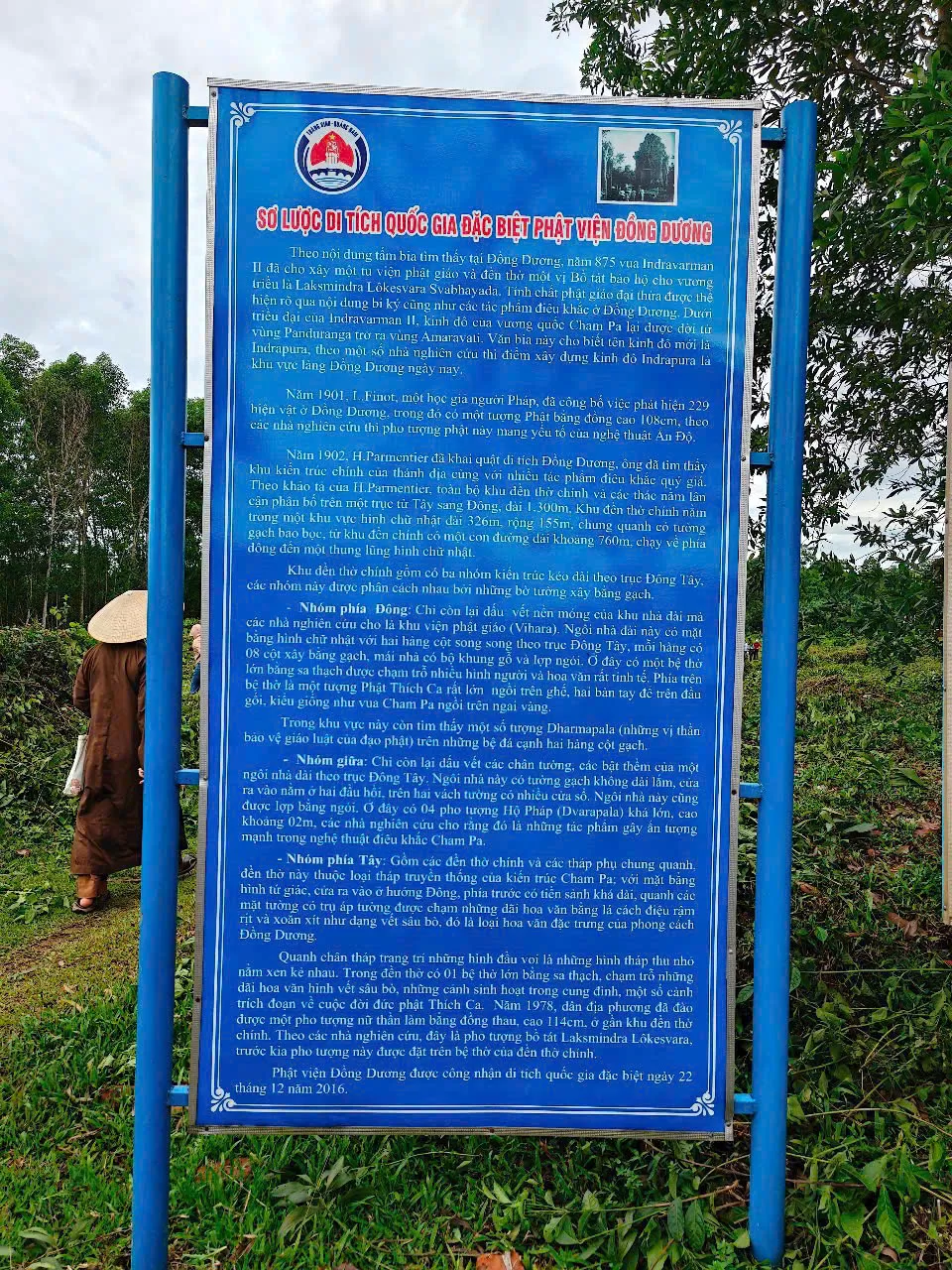 Trong chương trình điền dã lần này, Chư Tôn đức Lãnh đạo Ban Văn hoá Trung ương, các nhà nghiên cứu, học giả...đã trực tiếp đến khu vực Phật viện Đồng Dương hiện nay để khảo sát hiện trạng di tích và những tàn tích còn sót lại. Buổi tọa đàm chuyên đề đã được tổ chức với sự tham gia của Chư Tôn đức BVHTƯ, đại diện chính quyền địa phương và các nhà nghiên cứu hàng đầu về lịch sử, khảo cổ, Phật học, văn hóa Champa.
