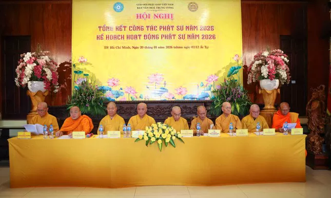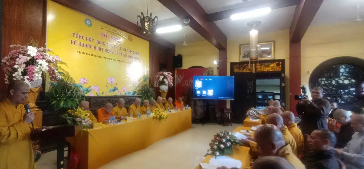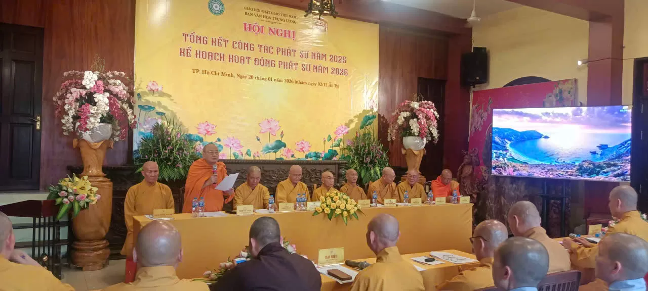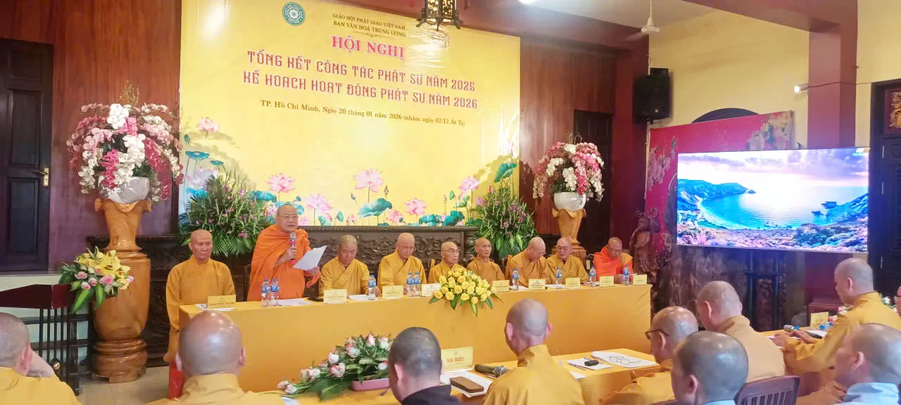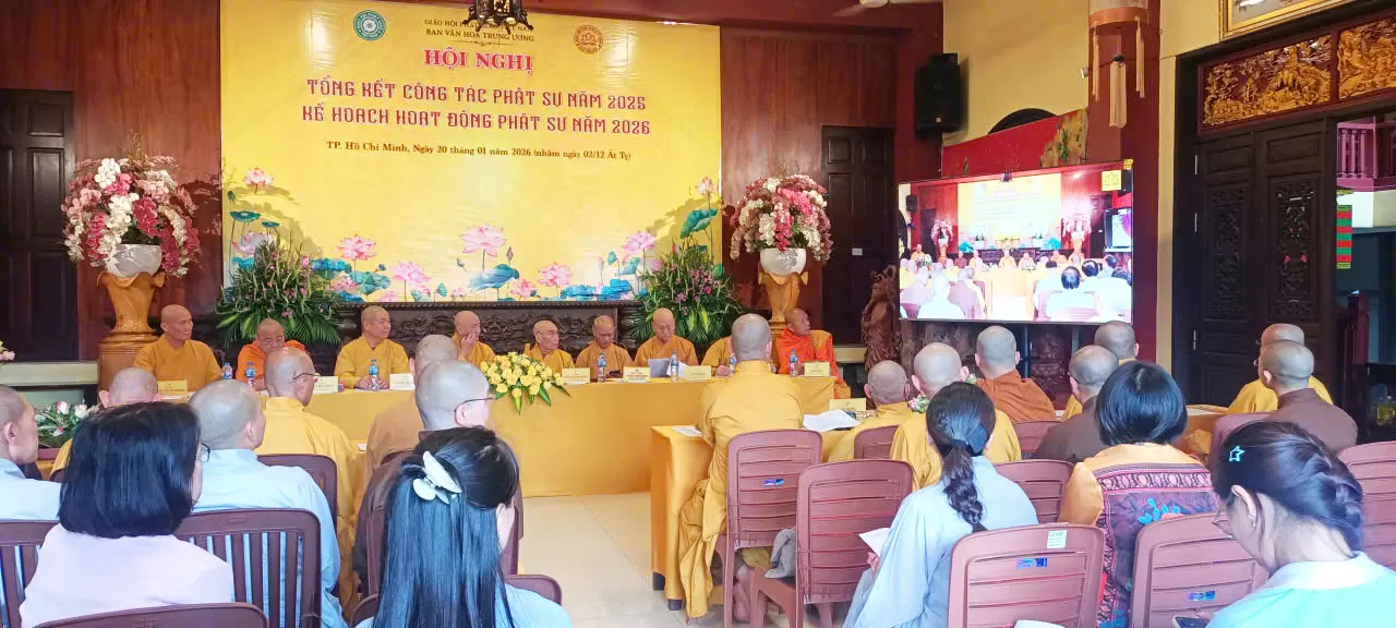 TP.HM - Lúc 14 giờ 00, ngày 20 tháng 01 năm 2026 (nhằm ngày 02 tháng 12 năm Ất Tỵ), tại Văn phòng Thường trực Ban Văn hóa Trung ương, chùa Pháp Hoa, số 870 Trường Sa, phường Nhiêu Lộc, TP. Hồ Chí Minh; Trong tinh thần phụng sự Đạo pháp – Dân tộc – Chủ nghĩa xã hội, Ban Văn hóa Trung ương Giáo hội Phật giáo Việt Nam long trọng tổ chức Hội nghị Tổng kết công tác Phật sự năm 2025 và triển khai Kế hoạch hoạt động Phật sự năm 2026, nhằm đánh giá những thành tựu đã đạt được và đề ra phương hướng hoạt động trong thời gian tới.