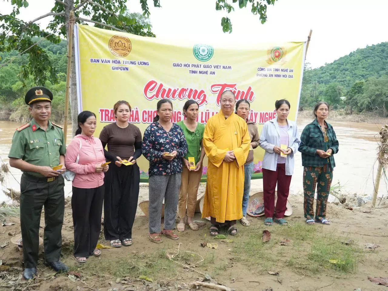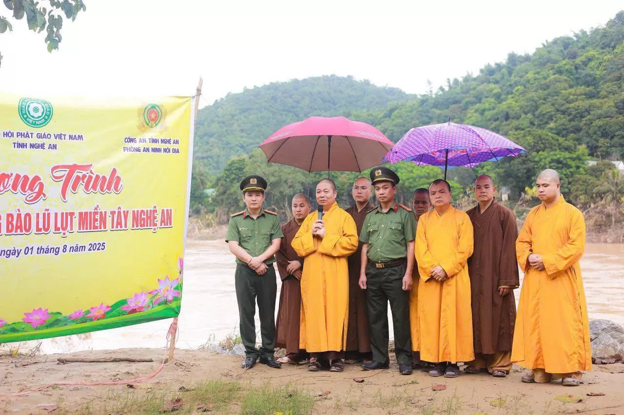 Nghệ An, ngày 01/8/2025 – Hướng tới tinh thần từ bi cứu khổ của đạo Phật và đạo lý “lá lành đùm lá rách” của dân tộc Việt Nam, Ban Văn hóa Trung ương Giáo hội Phật giáo Việt Nam phối hợp với Ban Trị sự GHPGVN tỉnh Nghệ An và Phòng An ninh Nội địa – Công an tỉnh Nghệ An đã tổ chức chương trình “Trao nhà cho đồng bào lũ lụt miền Tây tỉnh Nghệ An”, góp phần hỗ trợ bà con vượt qua khó khăn sau thiên tai.