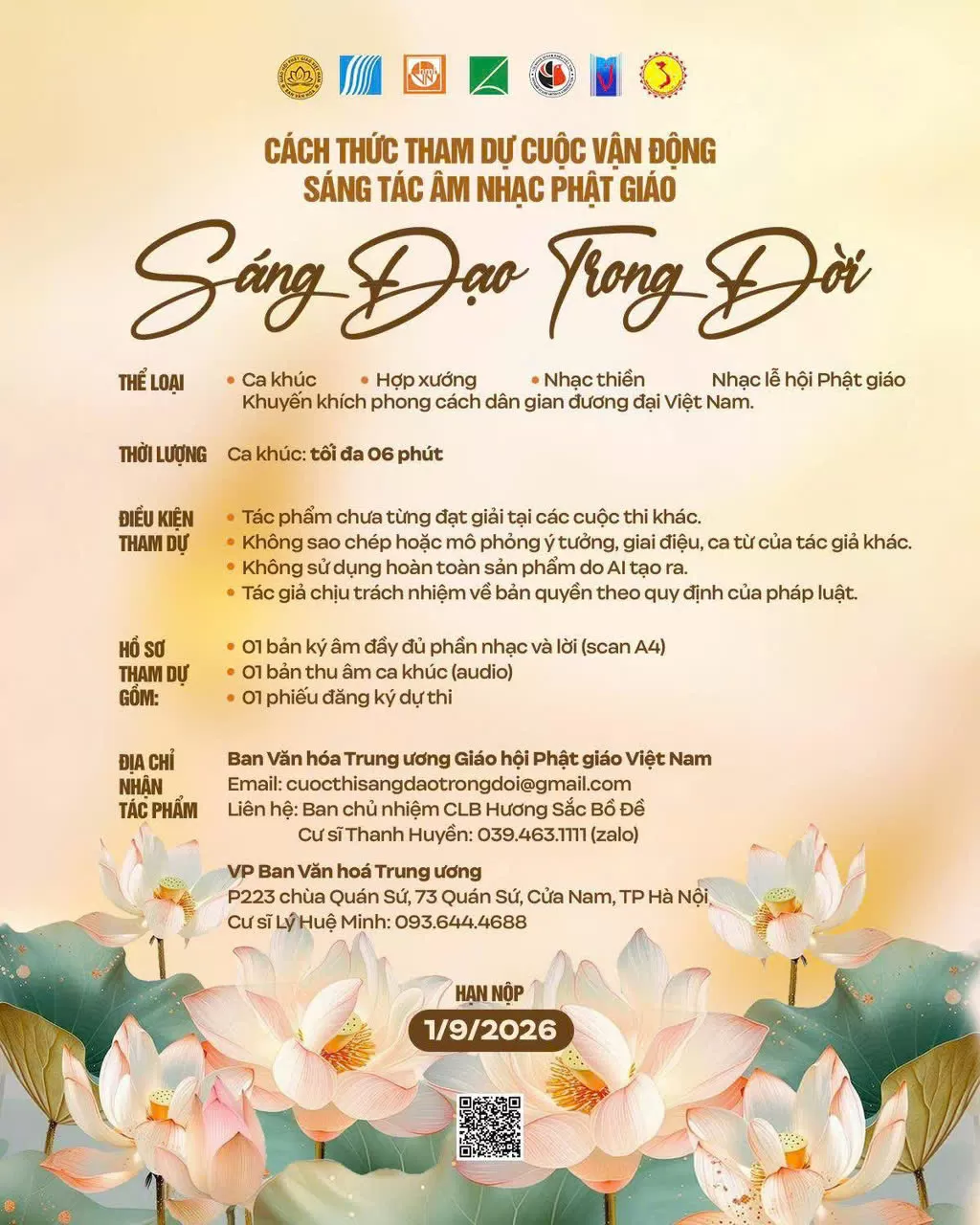 Ban Văn hoá Trung ương thông báo cách thức tham dự cuộc vận động sáng tác âm nhạc Phật giáo “Sáng Đạo Trong Đời”