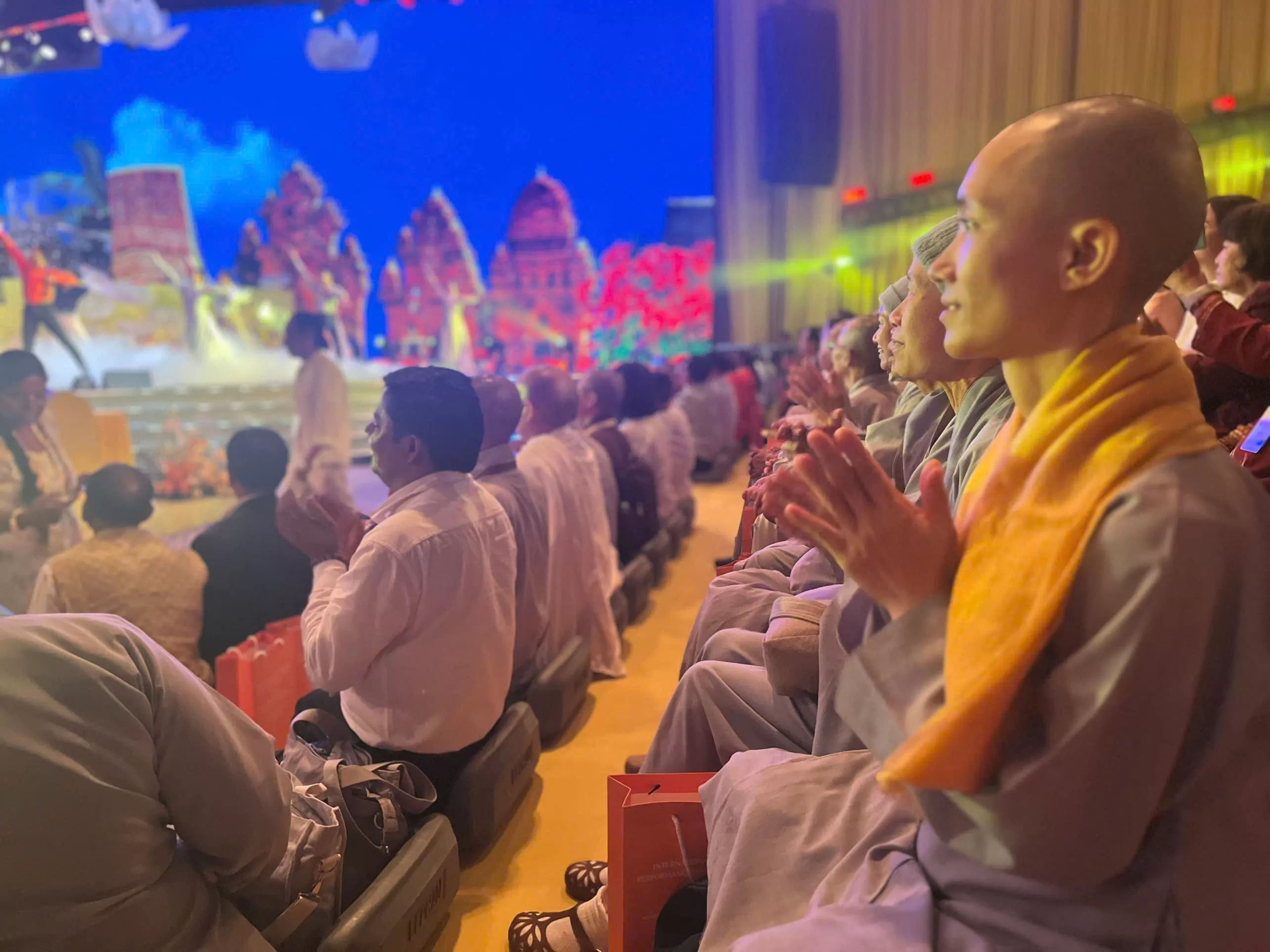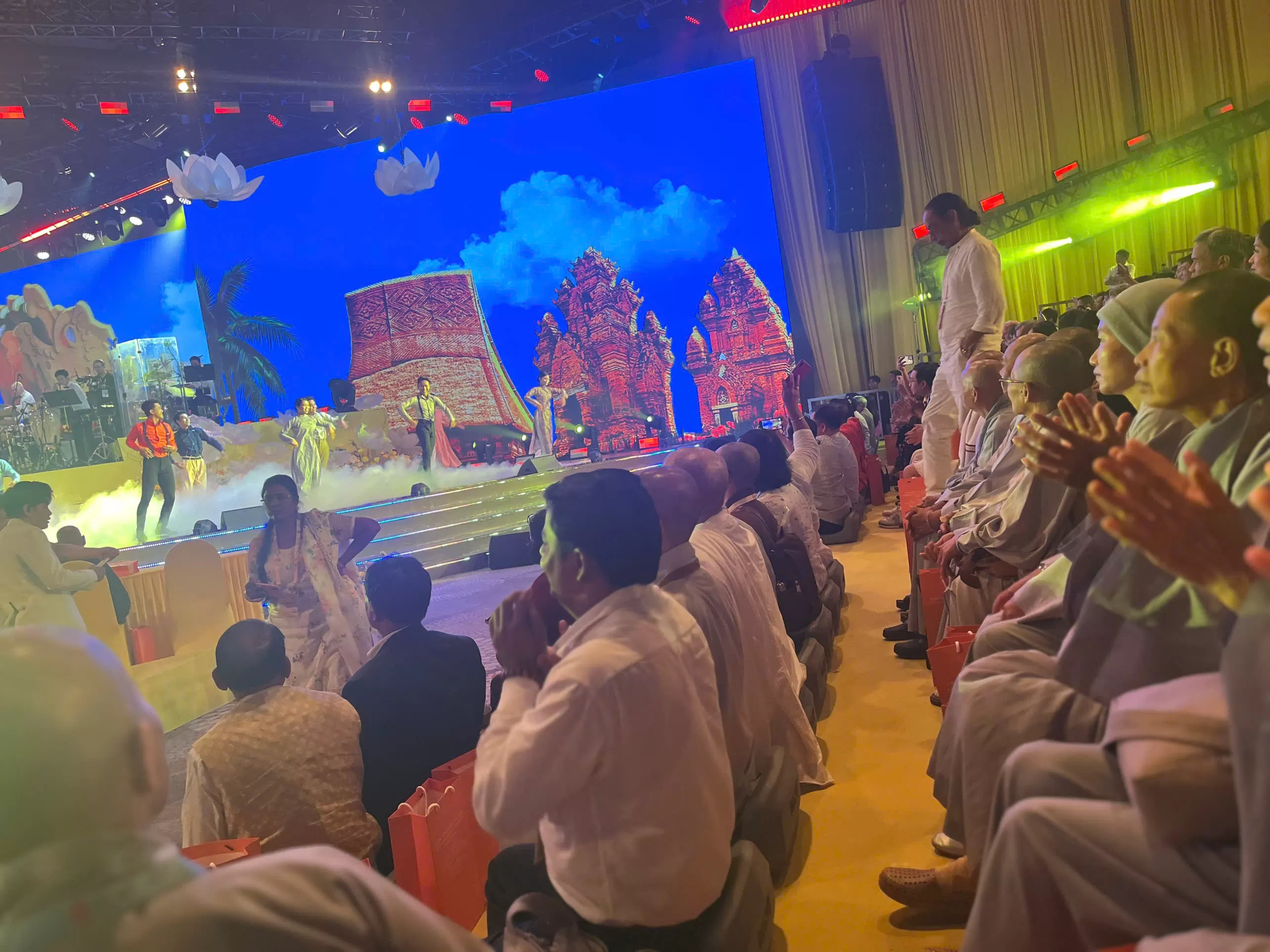 Phát biểu buổi lễ, HT. Thích Thọ Lạc nhấn mạnh: Trong niềm hoan hỷ vô biên, chúng ta có duyên lành hội tụ nơi đây – dưới mái nhà của tình người và tình đạo – để cùng nhau thắp sáng một đêm văn nghệ, nơi tâm hồn gặp gỡ qua âm thanh và ánh sáng của từ bi. Văn nghệ không chỉ là biểu diễn, mà là pháp âm vi diệu – đưa con người đến gần nhau hơn, vượt qua mọi ranh giới ngôn ngữ, văn hóa. Mỗi tiết mục là một đóa hoa đạo vị, là lời ca nuôi dưỡng tâm thức tỉnh thức và an lành.