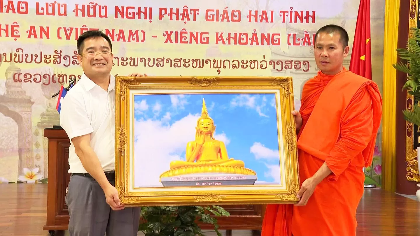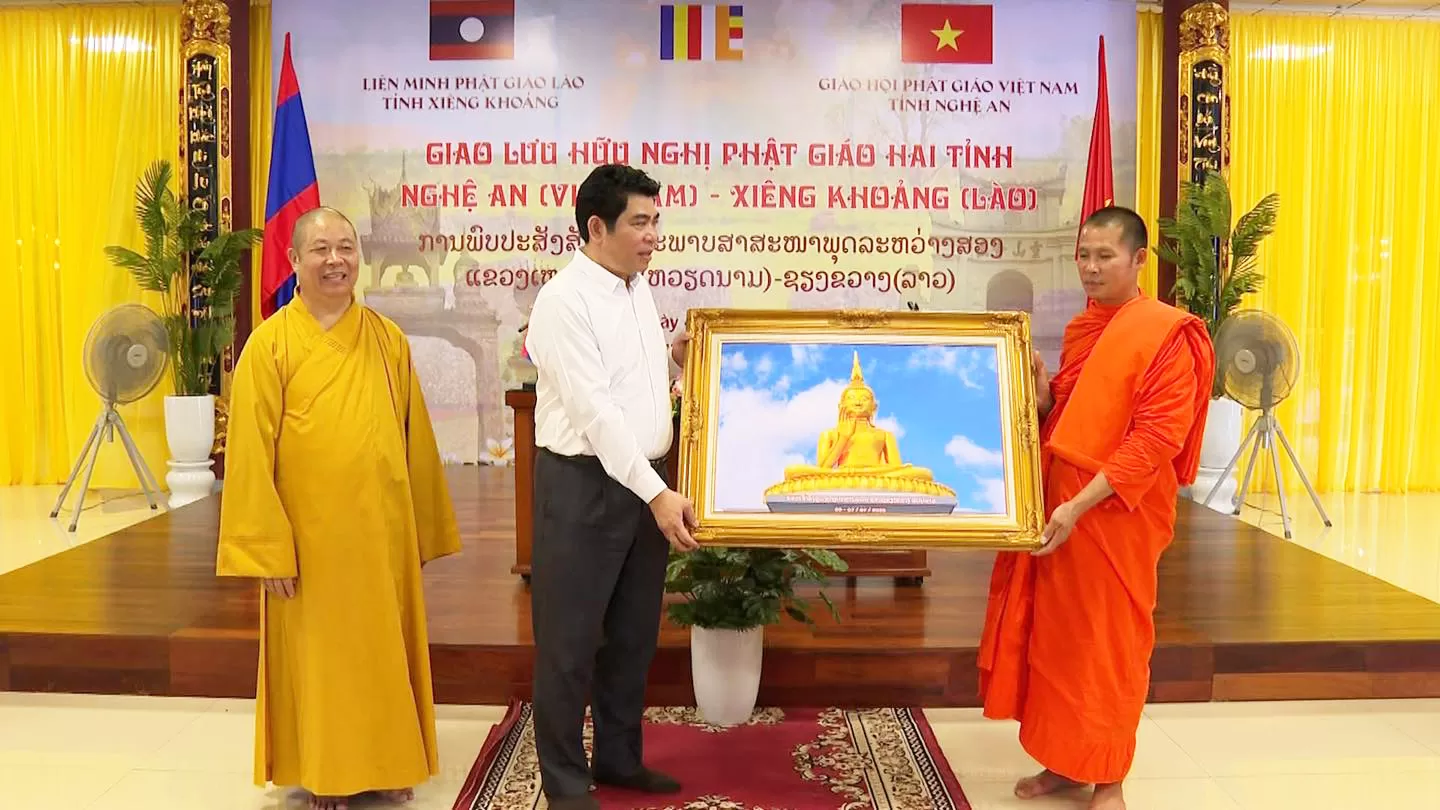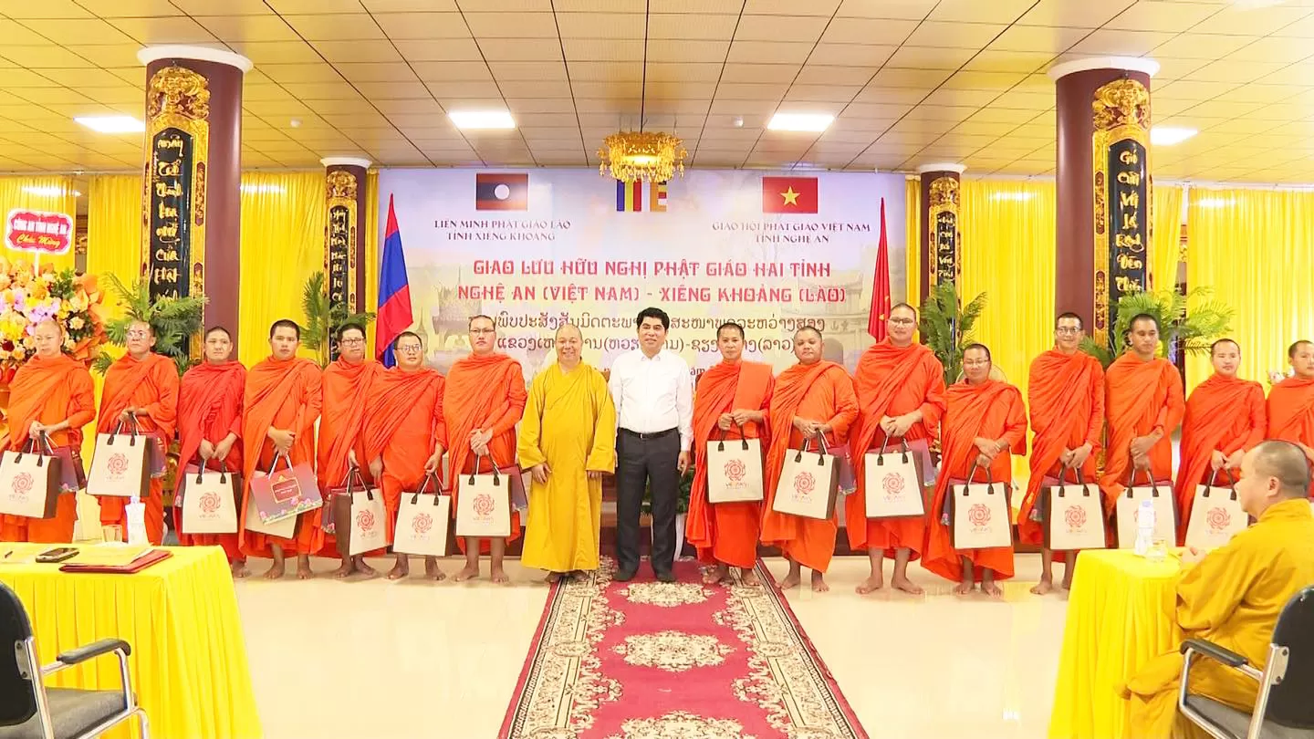 Đồng thời, trong khuôn khổ chương trình giao lưu Phật giáo giữa tỉnh Nghệ An (Việt Nam) và tỉnh Xiêng Khoảng (Lào), đoàn đại biểu Phật giáo hai nước đã trang nghiêm tổ chức lễ tưởng niệm tại Nghĩa trang Liệt sĩ, huyện Anh Sơn, tỉnh Nghệ An. Các đại biểu đã thành kính thực hiện nghi lễ dâng hương, đặt vòng hoa, dành phút mặc niệm tưởng nhớ công ơn của các anh hùng liệt sĩ đã hy sinh trong sự nghiệp đấu tranh giải phóng dân tộc và vun đắp tình hữu nghị đặc biệt Việt – Lào.