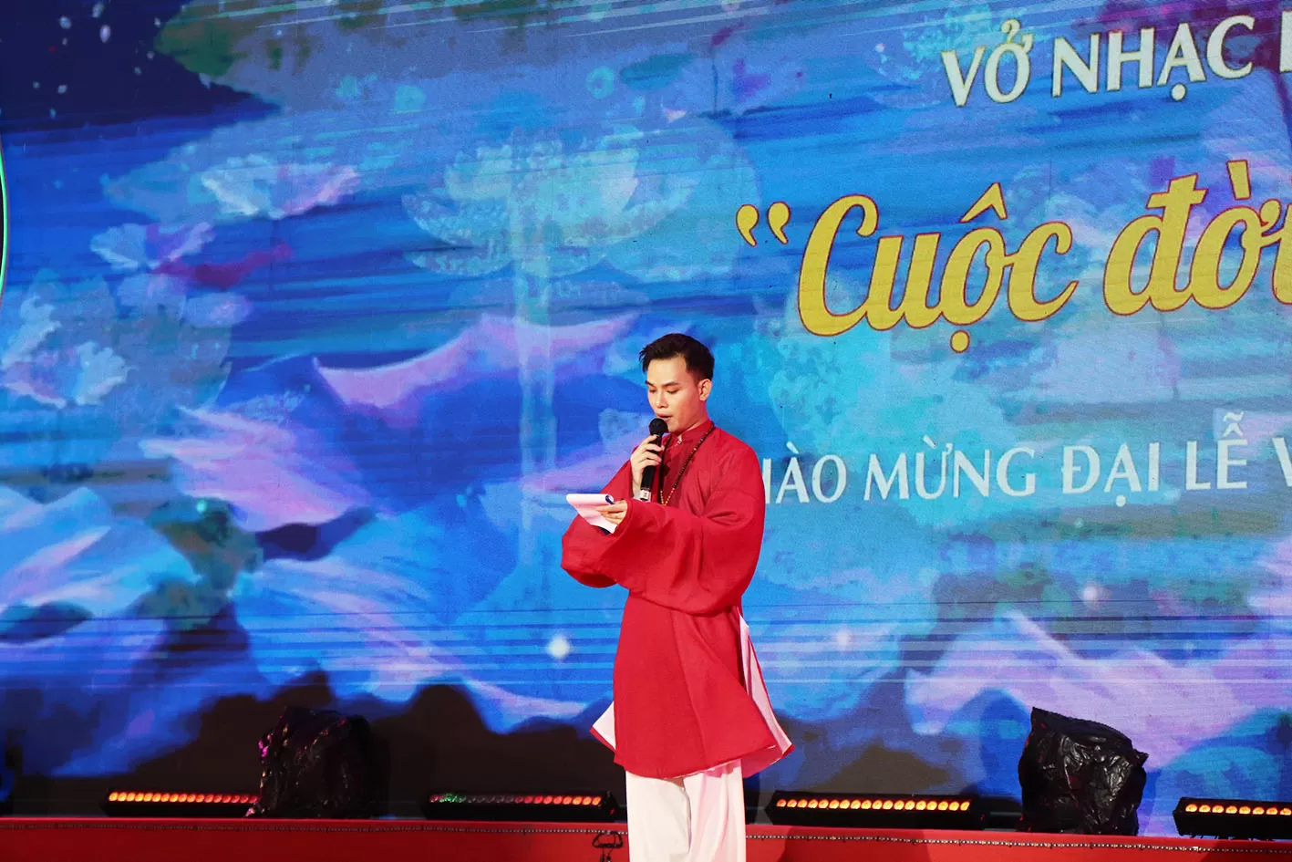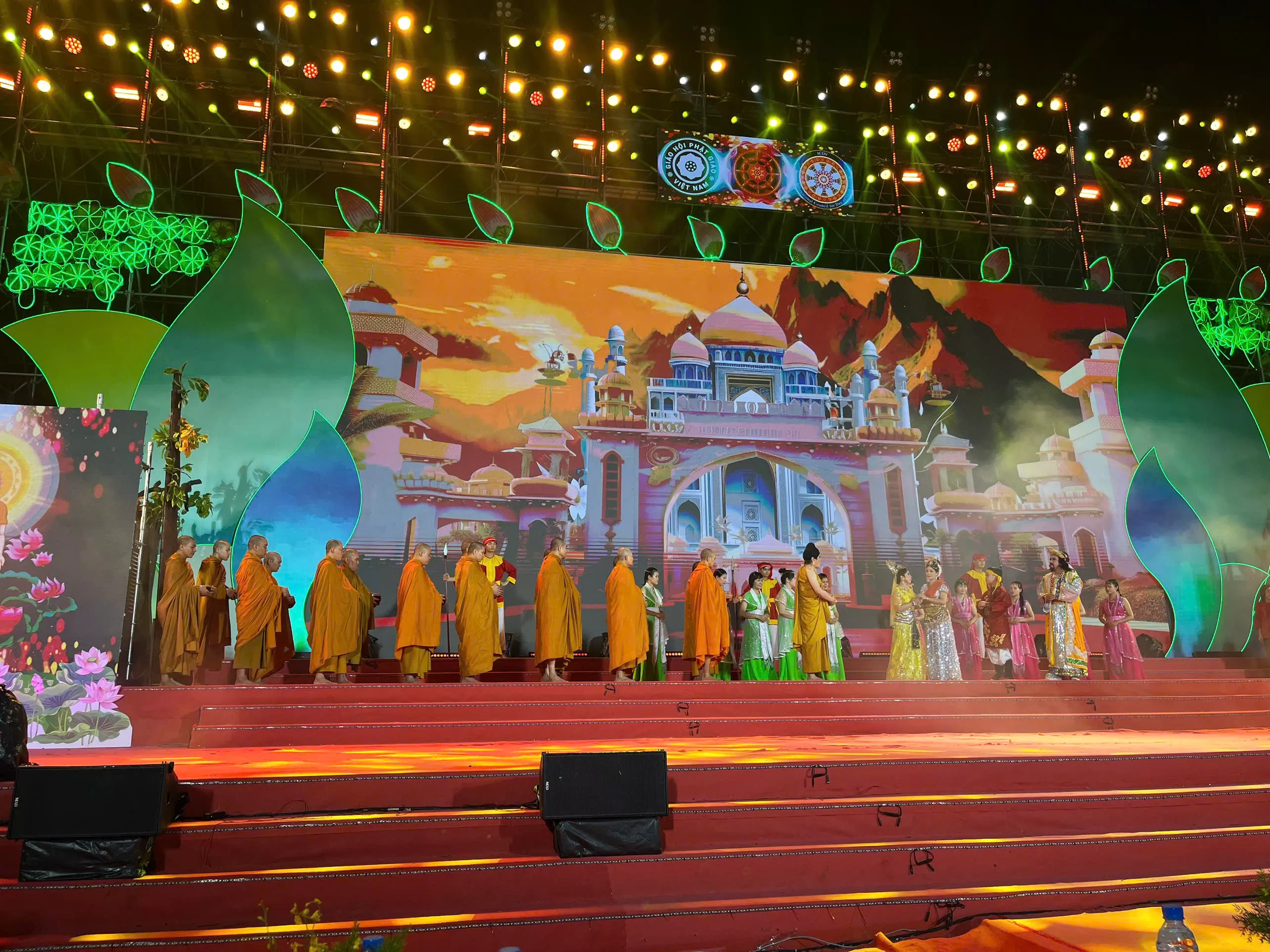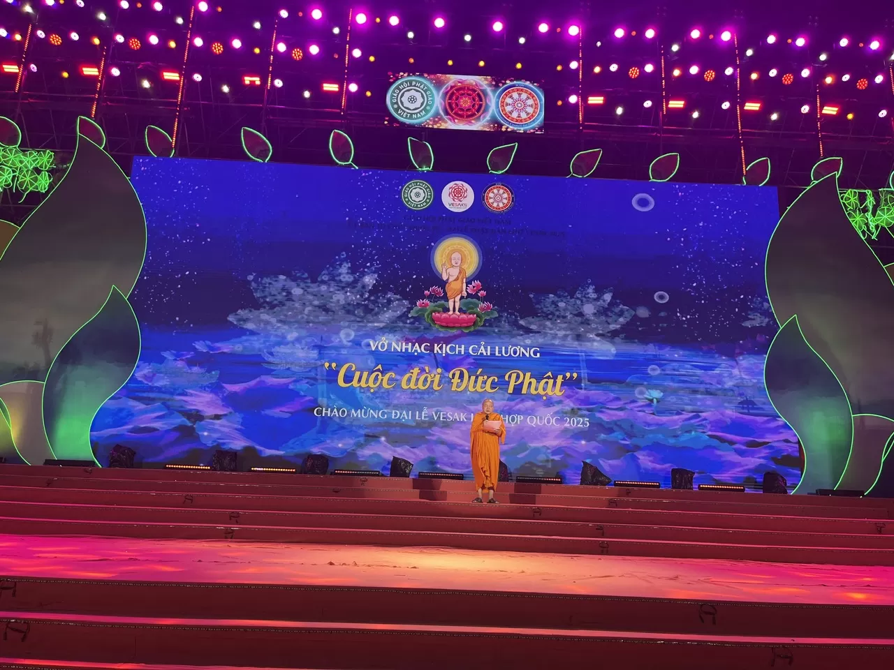 Điểm nhấn trong đêm nay là vở nhạc kịch cải lương Phật giáo “Cuộc đời và đạo nghiệp Đức Phật Thích Ca”, do cư sĩ Tuệ Quang sáng tác, tổng đạo diễn. Vở diễn có sự tham gia của các nghệ sĩ nổi tiếng như: