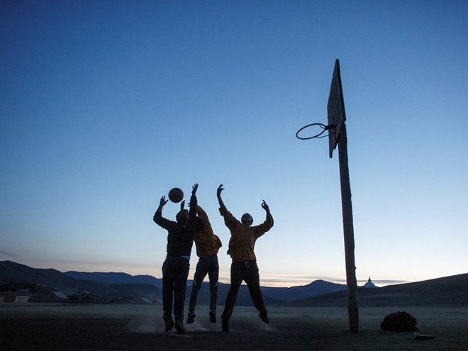 Họ thư giãn bằng cách chơi bóng rổ lúc hoàng hôn…