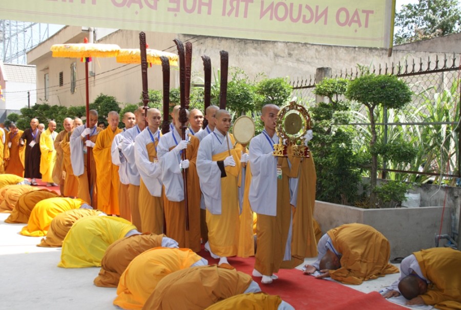 Cung nghinh chư tôn giáo phẩm quang lâm giới trường Đại giới đàn Hiển Kỳ - Ảnh: L.A