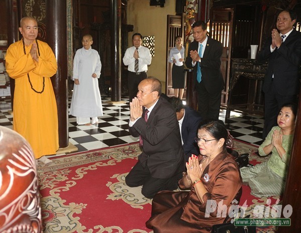 Tại buổi viếng thăm, ông Him Chhem, Bộ Trưởng cao cấp kiêm Bộ trưởng Bộ Lễ nghi và Tôn giáo Campuchia đã có lời tán thán về kiến trúc lịch sử của chùa Hội Khánh, đồng thời cũng tỏ lòng vui mừng khi được HT.Thích Thiện Duyên cho biết sơ lược về di tích lịch sử văn hóa này. Ông còn ngỏ lời hy vọng được kết hợp với giáo dục Phật giáo tại Việt Nam trong việc trao đổi ngôn ngữ, kinh sách Pali. Ông mong rằng Chư tôn đức tăng ni đang là hành giả tu học tại Việt Nam được trau dồi và nghiên cứu thêm các kinh điển Pali.