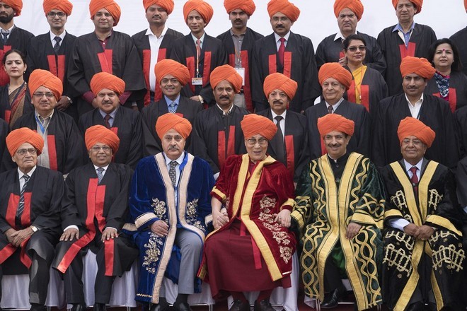 | Đức Đạt Lai Lạt Ma với các thành viên của Trung tâm Đại học Jammu ở Jammu, J & K, Ấn Độ. Ngày 18/03/2018. Ảnh: Tenzin Choejor |