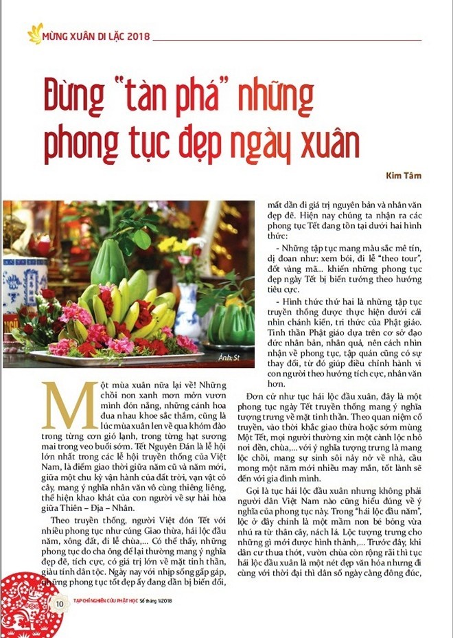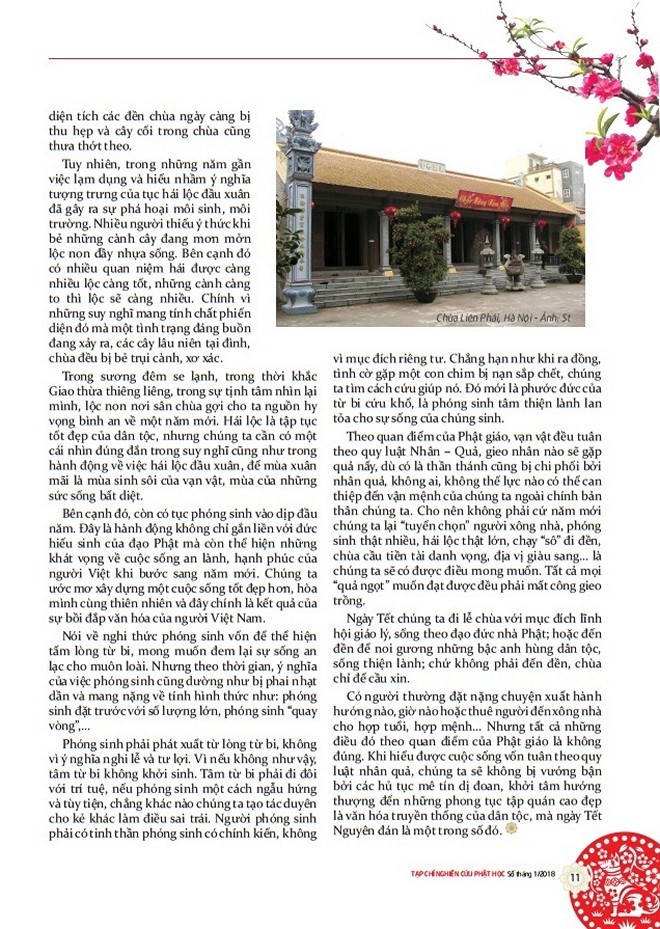 Ngày Tết chúng ta đi lễ chùa với mục đích lĩnh hội giáo lý, sống theo đạo đức nhà Phật; hoặc đến đền để noi gương những bậc anh hùng dân tộc, sống thiện lành; chứ không phải đến đền, chùa chỉ để cầu xin.