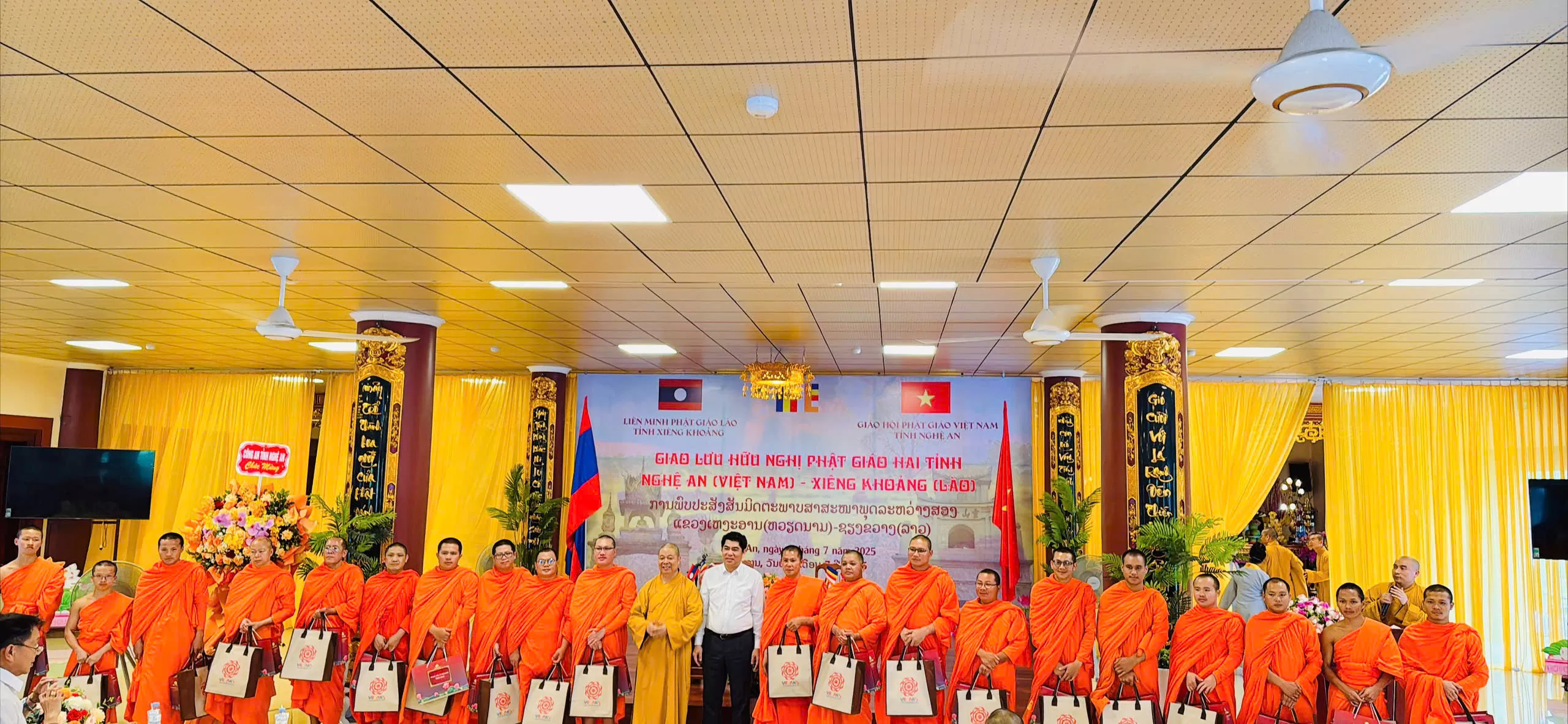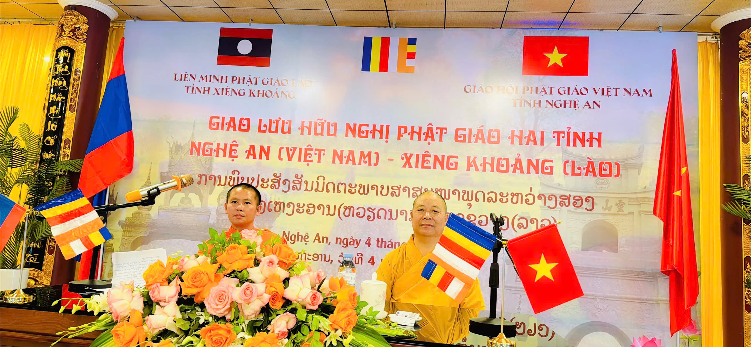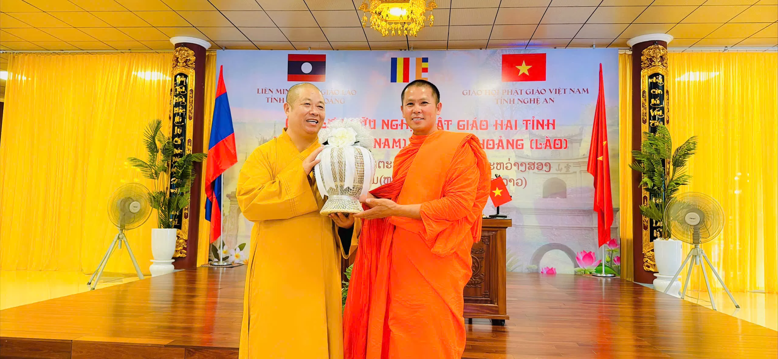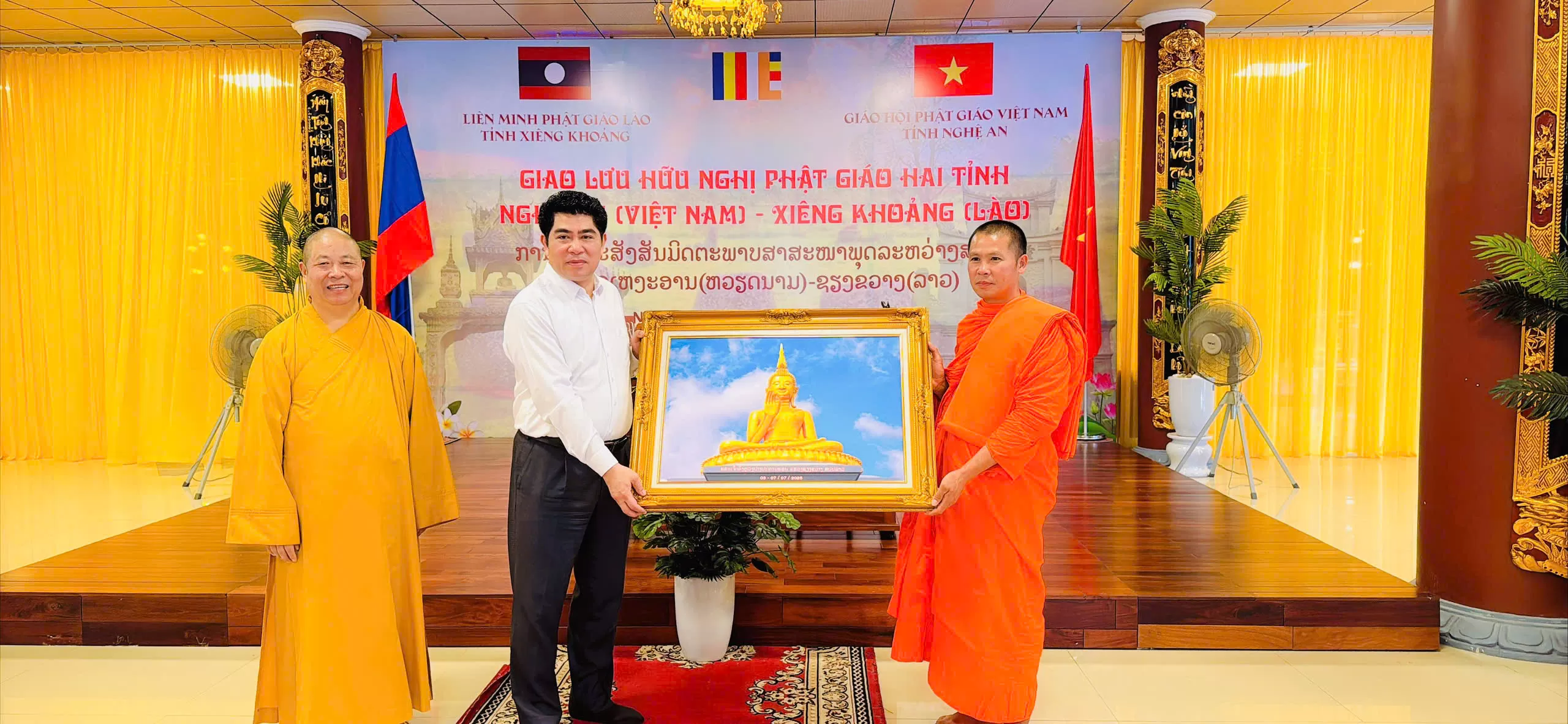Trong dòng chảy hữu nghị ấy, Phật giáo – với tư cách là một tôn giáo có vai trò lớn trong đời sống tinh thần của nhân dân hai nước, cũng đã không ngừng tăng cường giao lưu, chia sẻ, tương trợ lẫn nhau. Những buổi gặp gỡ, những chương trình giao lưu văn hóa, giáo lý, hoằng pháp, hay sự phối hợp trong các hoạt động từ thiện xã hội,… chính là cầu nối tâm linh bền vững giữa Phật giáo 02 nước. Phật giáo tỉnh Xiêng Khoảng và Phật giáo tỉnh Nghệ An có nhiều điểm tương đồng: đều là nơi có bề dày lịch sử, có truyền thống tu học, hoằng pháp lâu đời, có sự hiện diện đông đảo của Chư Tăng và Phật tử thuần thành. Đặc biệt là hai tỉnh cùng nằm trên tuyến biên giới, cùng chung mạch nguồn văn hóa, phong tục, tín ngưỡng. Những điểm tương đồng đó càng làm cho sự gắn kết giữa hai tổ chức Phật giáo trở nên thân thiết, gần gũi và thiêng liêng.