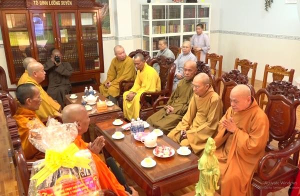 Cùng đi trong đoàn có HT. Thích Thiện Đức ủy viên Ban Thường trực HĐTS-GHPGVN, phó Ban Kiểm Soát trung ương GHPGVN cùng chư tôn đức Tăng. Tại tỉnh Trà Vinh, Hòa thượng đã đến thăm và chúc Tết chùa Lưỡng Xuyên – Văn phòng ban trị sự GHPGVN tỉnh Trà Vinh. Tiếp đoàn tại chùa chùa Lưỡng Xuyên, có HT. Thạch Sok Xane, phó chủ tịch HĐTS GHPGVN, Trưởng ban trị sự GHPGVN tỉnh Trà Vinh cùng chư tôn đức Tăng, Ni thành viên BTS GHPG tỉnh Trà Vinh.