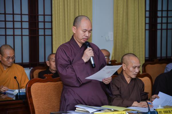Thay mặt Ban Thư ký HĐTS, HT. Thích Huệ Thông, Phó Tổng Thư ký kiêm Chánh Văn phòng 2 T.Ư trình dự thảo báo cáo sơ kết công tác 6 tháng đầu năm 2018.