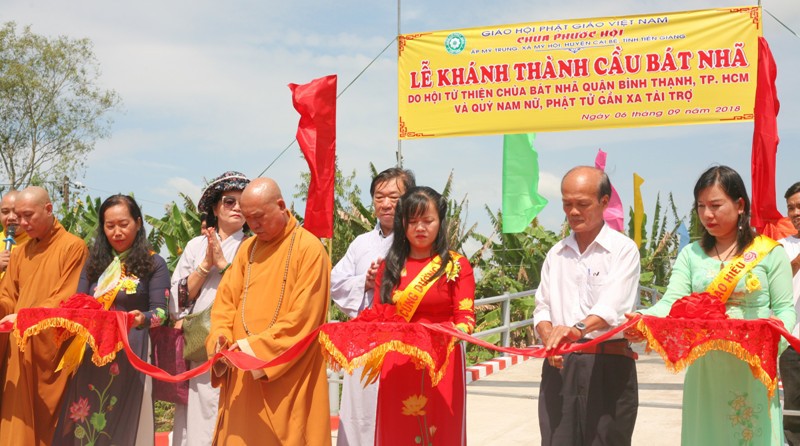 Tại chiếc cầu mới xây, khách mời và bà con Phật tử đã nghe Ban Tổ chức báo cáo chi tiết công tác, tiến trình xây dựng cầu nông thôn. Theo đó chiếc cầu thực hiện với chiều dài 30 mét, rộng 3,1 mét, thay thế cho cây cầu bằng ván gỗ, xập xệ, cheo leo, không tay vịn trước đây.