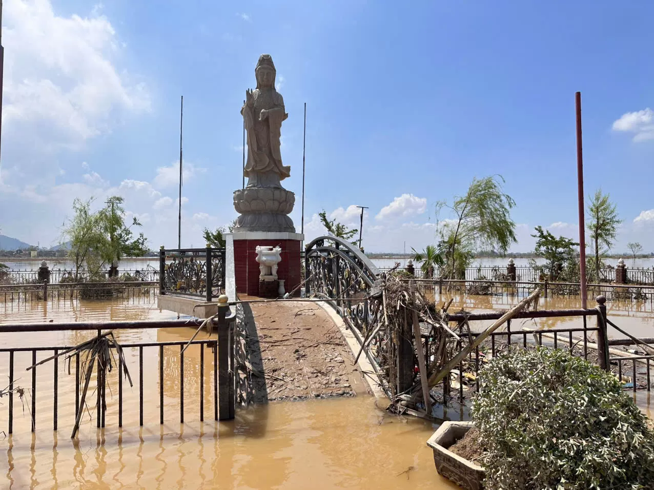 Đoàn đã đến thăm Chùa Phúc Tài ở xã Hưng Lợi cũ, lắng nghe Sư cô Thích Chơn Tuệ - Trụ trì Chùa bộc bạch: “Hiện nay mặc dù đã qua 1 tuần của cơn bão số 10 nhưng mực nước Sông Lam vẫn dâng cao, các phương tiện chưa thể vào chùa được nên chúng con vẫn phải ở tá túc nơi chân đê nhà Phật tử, mong trên Hòa thượng, cùng Quý Đại đức đánh chữ đại xá cho chúng con chèo đò ra đây. Mấy ngày nay, chúng con và bà con vùng này chỉ có xin nước lọc và dùng mỳ tôm qua ngày thôi”.