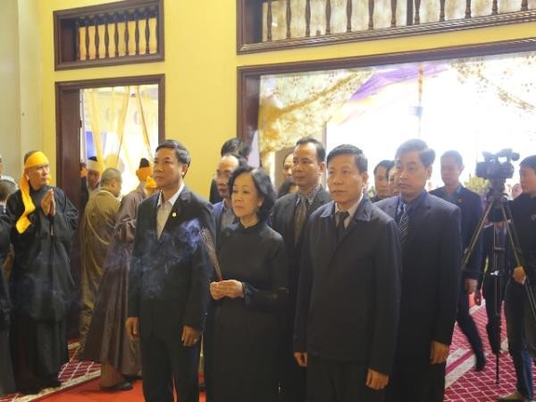 Sau đó, các phái đoàn đã dâng hương, tưởng niệm và đảnh lễ Giác linh cố Đại Lão Hòa thượng tân viên tịch.