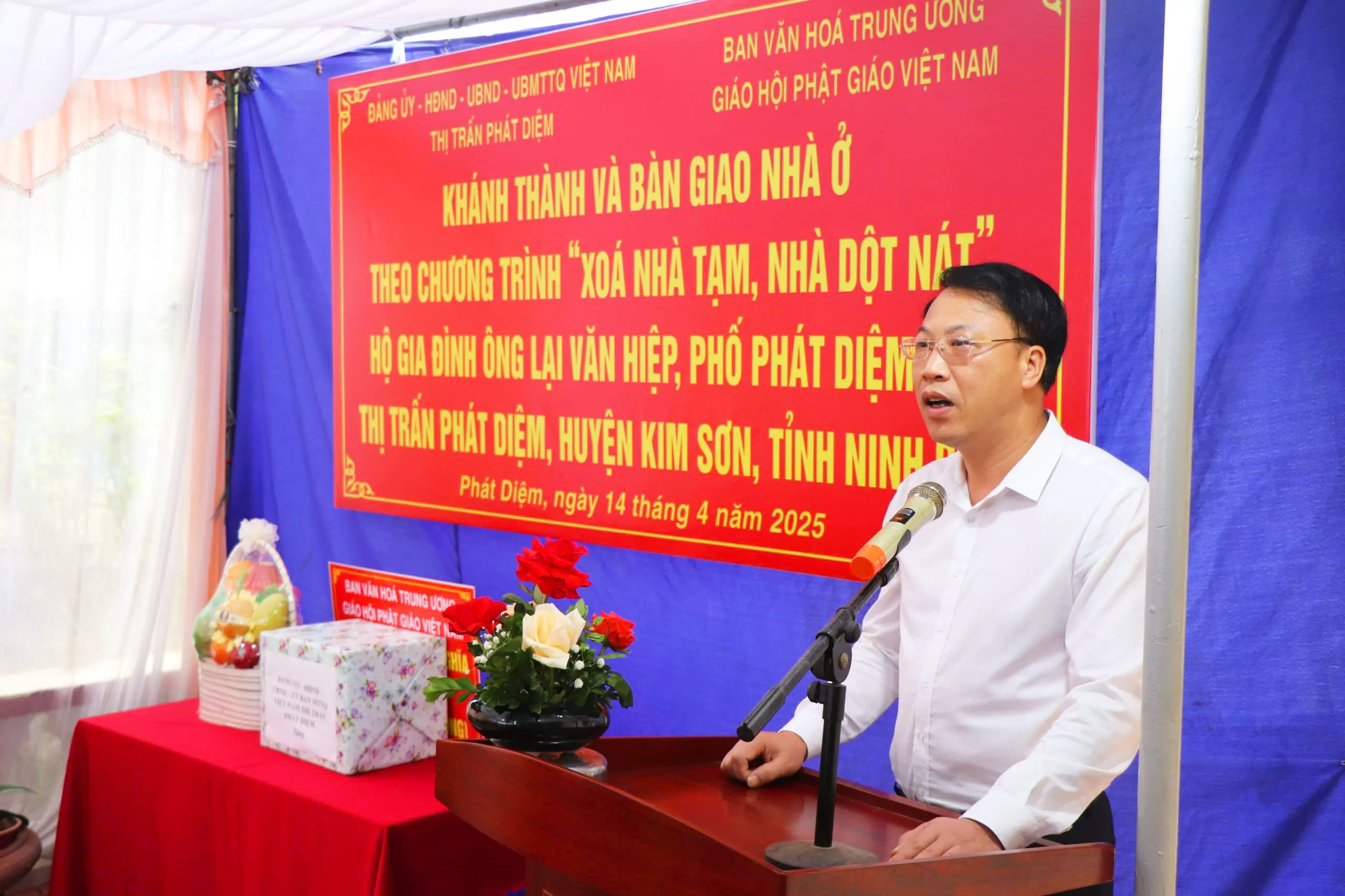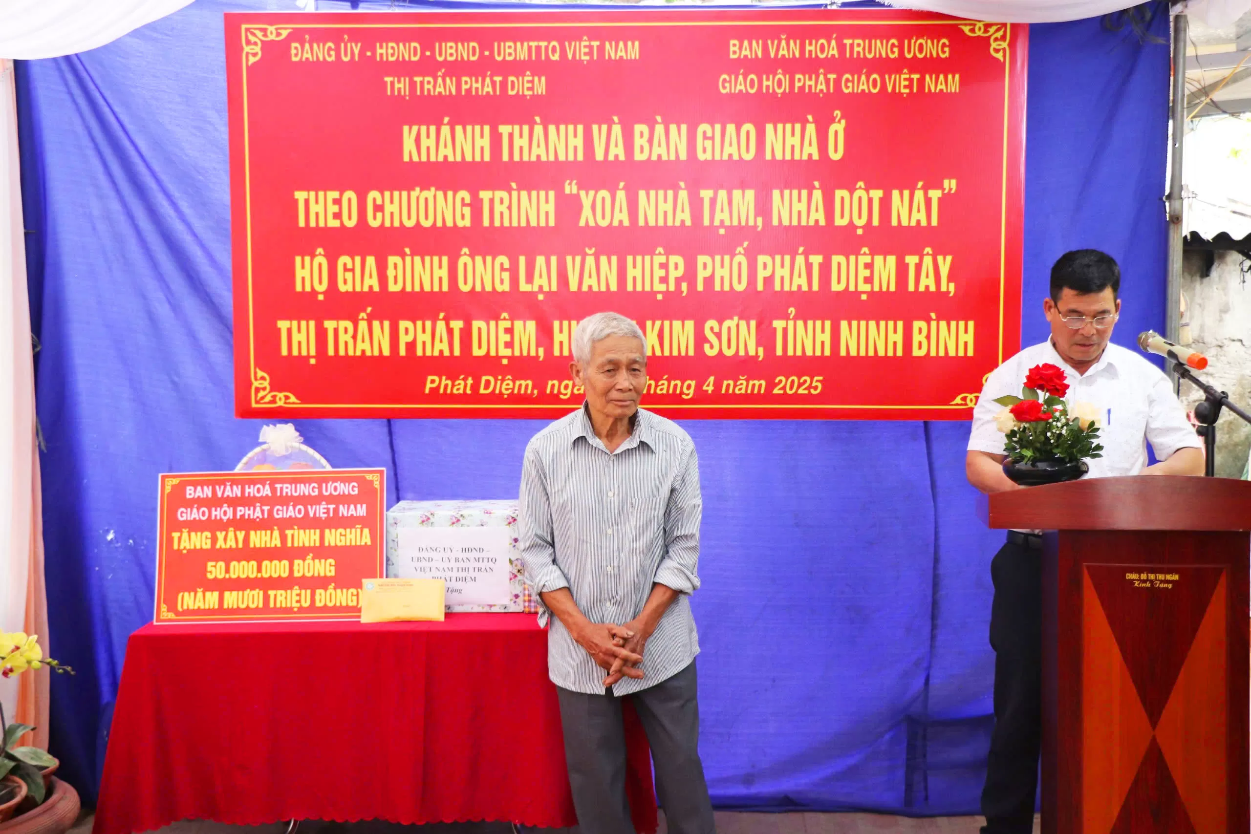 Buổi lễ diễn ra trong bầu không khí ấm cúng, đạo vị và đầy nghĩa tình, dưới sự chứng minh và hiện diện của chư Tôn đức Tăng Ni cùng quý vị lãnh đạo Đảng ủy, UBND, UBMTTQVN thị trấn Phát Diệm. Căn nhà mới được trao tặng trong niềm hoan hỷ và xúc động của gia đình thụ hưởng – một mái ấm nhỏ nhưng thấm đẫm nghĩa tình và tâm nguyện phụng sự chúng sinh của người con Phật.