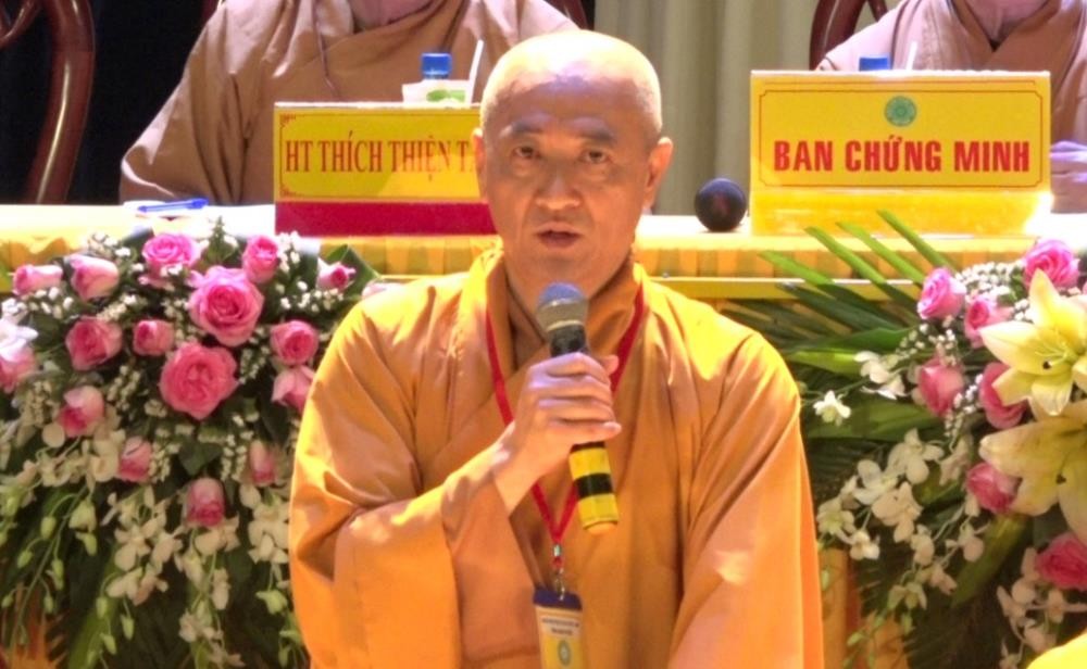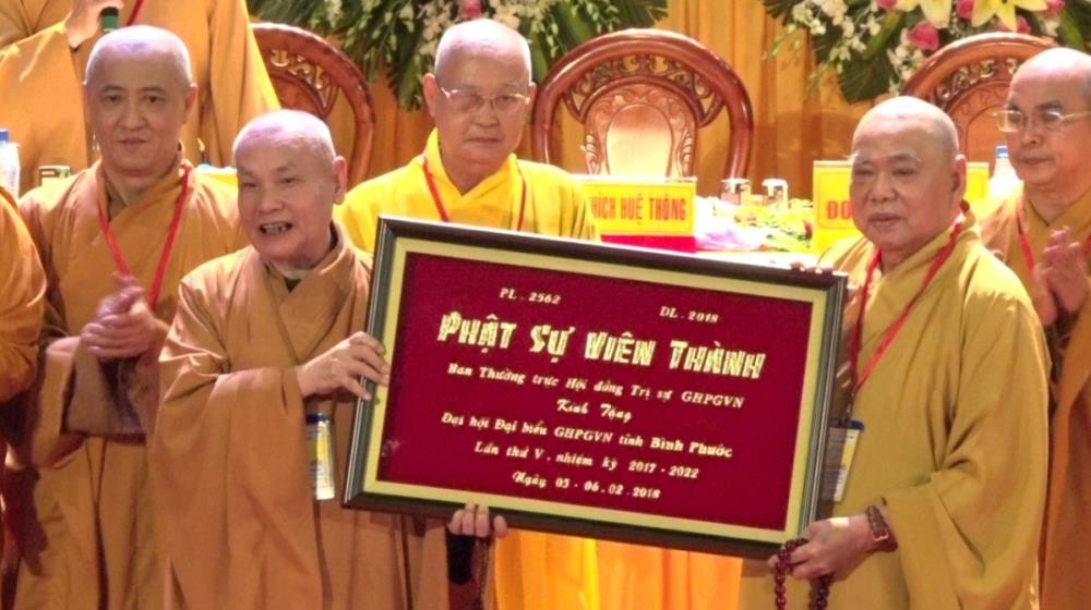 "Nhân đây, xin được thay mặt Tăng ni Phật tử chân thành ghi nhận công đức cống hiến của chư Tôn đức Tăng ni và Phật tử cho sự nghiệp ổn định và phát triển GHPGVN tỉnh Bình Phước trong các nhiệm kỳ qua mà nay không còn tiếp tục tham gia do niên cao theo quy định của Giáo hội", Hoà thượng nhấn mạnh.