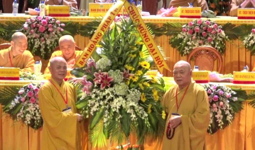 HT. Thích Tấn Đạt trao tặng lẵng hoa chúc mừng của Ban Hoằng pháp T.Ư