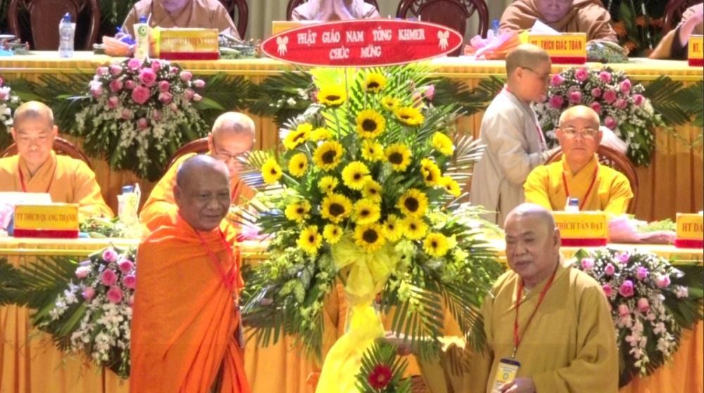 HT. Danh Lung trao tặng lẵng hoa chúc mừng của Phật giáo Nam tông Khmer