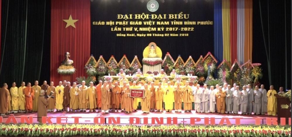 Ban đạo từ tại Đại hội, HT.Thích Thiện Nhơn, Chủ tịch HĐTS GHPGVN nhấn mạnh: “Trên cơ sở truyền thống đoàn kết, hòa hợp, kế thừa phát huy những thành quả đạt được của nhiệm kỳ trước với những đặc thù về lịch sử, văn hóa, kinh tế và nhất tâm hoàn thành trọng trách mà các hệ phái, Tăng ni Phật tử giao phó. Ban Trị sự GHPGVN tỉnh Bình Phước đã đạt được nhiều thành quả to lớn trong các hoạt động Phật sự như báo cáo tổng kết công tác Phật sự nhiệm kỳ IV (2012-2017) mà Ban Thư ký đã trình bày”.
