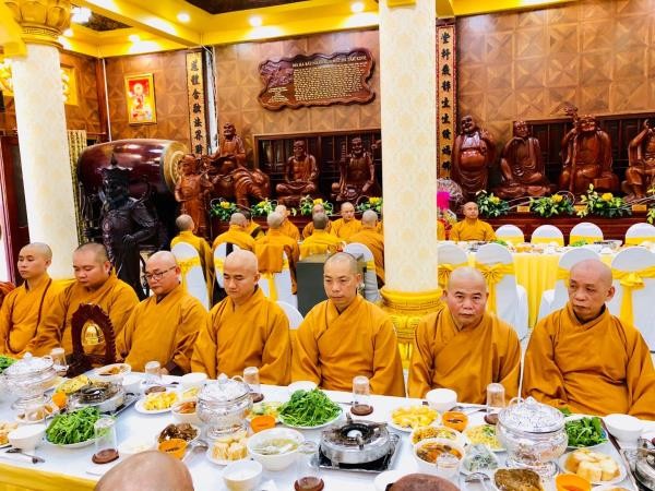 Trước đó chư Tăng và Phật tử đã có thời khóa tụng kinh Dược sư tại chánh điện. Sau đó cung thỉnh chư tôn đức quang lâm và trang nghiêm tổ đường chùa Minh Đạo chứng minh cho trai lễ.