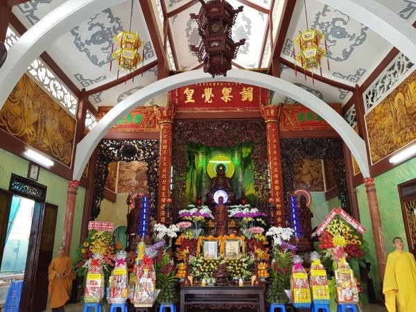 Cung đón chư Tôn đức lãnh đạo Trung ương Giáo hội có HT. Thích Huệ Minh, Trưởng ban Nghi lễ T.Ư, Viện chủ chùa Giác Uyển.