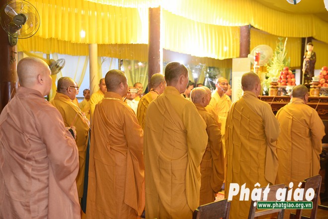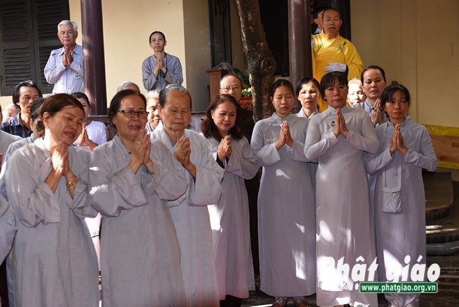 Cùng đó là Chư tôn giáo phẩm HĐCM, HĐTS, tăng ni phật tử đồng xướng danh hiệu Đức Phật A Di Đà tiếp dẫn Giác linh cố Hòa thượng cao đăng Phật quốc.