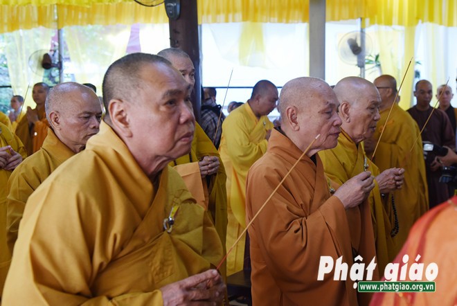 Buổi lễ có sự chứng dự của Chư tôn đức giáo phẩm HT.Thích Thiện Nhơn, Chủ tịch HĐTS GHPGVN cùng Chư tôn đức HĐTS, Chư tôn đức các Ban viện Trung ương Giáo hội, Ban Trị sự GHPGVN Tp.HCM, huyện Hóc Môn; đại diện tông phong pháp quyến và môn đồ có HT.Thích Hải Ấn, Viện Trưởng Học viện Phật giáo Việt Nam tại Huế cùng đông đảo Chư tôn đức tăng, ni, phật tử...