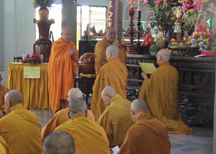 Phát biểu khai mạc lễ Tự tứ, HT.Thích Nhật Lang, Trưởng BTS GHPGVN Q.Gò Vấp đã chúc mừng chư hành giả được thêm tuổi hạ, đồng thời Hòa thượng bày tỏ hoan hỷ khi thấy Tăng đoàn Phật giáo quận trong khóa an cư rất hòa hợp, thanh tịnh, có chất liệu của sự tu học, tạo nên sinh khí trong các Phật sự của Phật giáo quận.