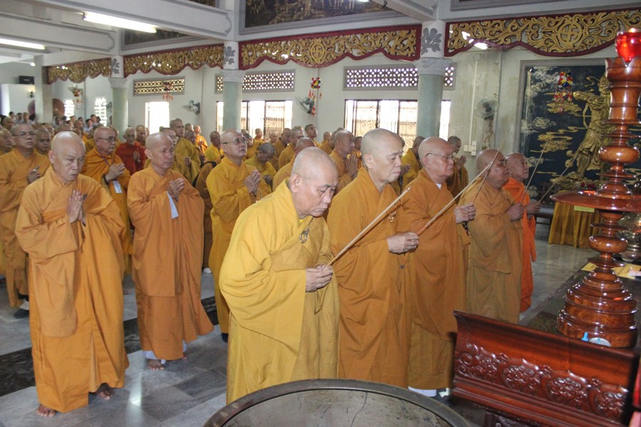 Sau lời ban đạo từ của Hòa thượng chứng minh, chư tôn đức đã dâng hương lễ Phật, thực hiện khóa lễ ngắn.