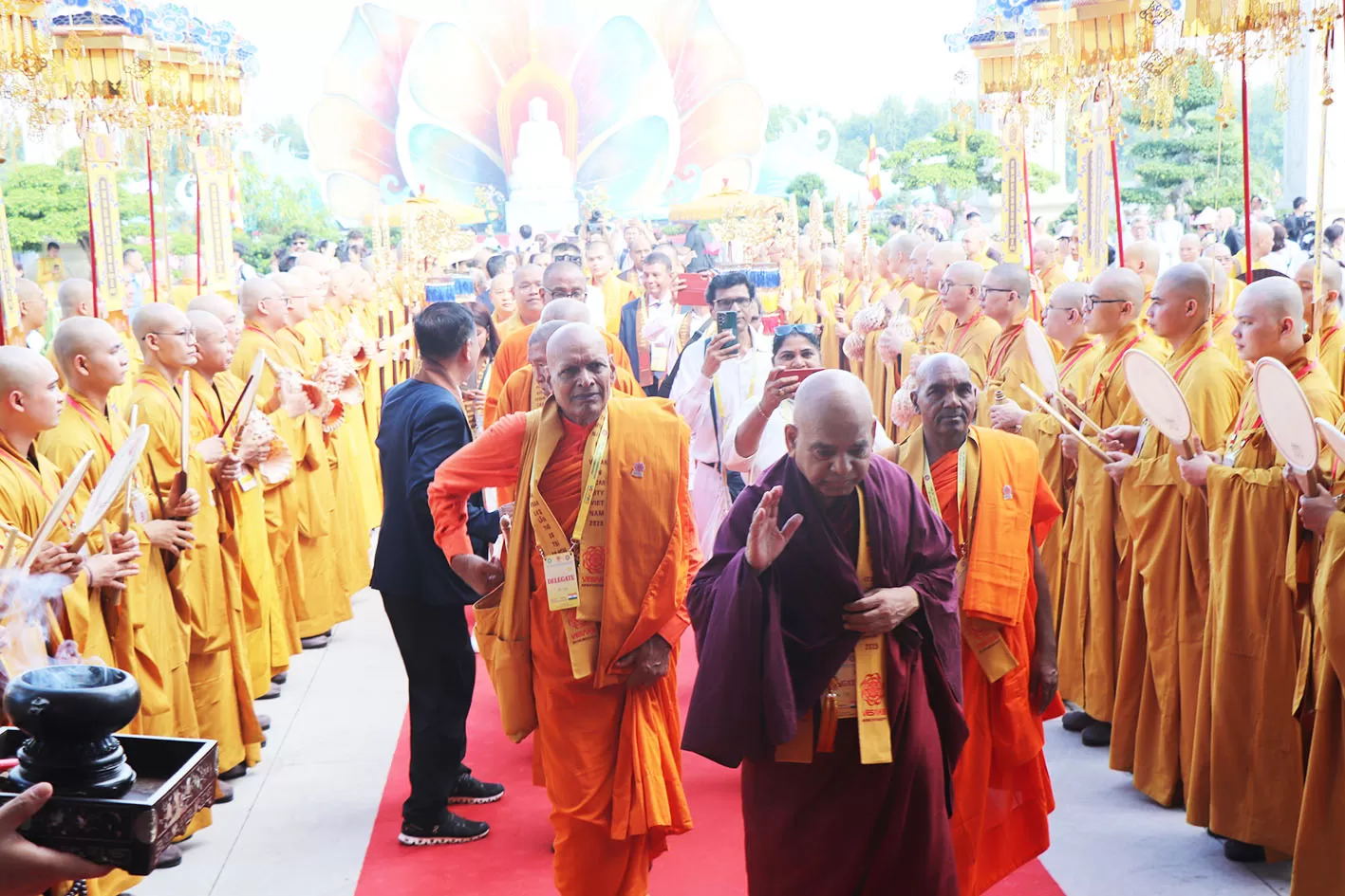 Đồng thời với tình hữu nghị Phật giáo Quốc tế hân hạnh đón tiếp Đại lão Hòa thượng Bhaddanta Candimābhivaṁsa - Tăng vương Ủy ban Tăng đoàn Tối cao Quốc gia Miến Điện; Trưởng lão Hòa thượng GS.TS. Brahmapundit - Chủ tịch ICDV, Chủ tịch IABU, Thành viên Hội đồng Tăng vương Tối cao Thái Lan; Tổng thống Sri Lanka - Anura Kumara Dissanayake; Trưởng lão Hòa thượng Diễn Giác (Shi Yanjue) - Chủ tịch Hiệp hội Phật giáo Trung Quốc; Đại lão Hòa thượng Samdech Preah Sangkhareach Bour Kry - Tăng vương Hội Phật giáo Dhammyutt, Vương quốc Campuchia; Đại lão Hòa thượng Am Limheng - Tăng vương Hội Phật giáo Mahānikāya Vương quốc Campuchia; Hòa thượng Warakagoda Sri Gnanarathana - Tăng vương Hệ phái Phật giáo Siyamopali, Tích Lan; Hòa thượng TS. Niyangoda Vigithasiri Anunayaka - Tăng vương Hệ phái Phật giáo Malwatta; Hòa thượng Karagoda Uyangoda Maithri Moorthi - Tăng vương Hệ phái Phật giáo Amrapura; Đại lão Hòa thượng Maha Veth Masaenai - Phó Chủ tịch, Tổ chức Hữu nghị Phật giáo Lào; Đại lão Hòa thượng TS. Bhadant Rahul Bodhi Mahathero - Chủ tịch Tăng đoàn Tỳ-kheo Ấn Độ; Đại lão Hòa thượng Buddhapriya Mahathero - Tăng vương Hội Phật giáo Bangladesh Bouddha Kristi Prachar, Bangladesh cùng Chư Tôn đức lãnh đạo các tổ chức Phật giáo tiêu biểu Đại biểu Đại diện Phật giáo của 108 Quốc gia trên thế giới cùng quang lâm Đại lễ Vesak LHQ 2025.