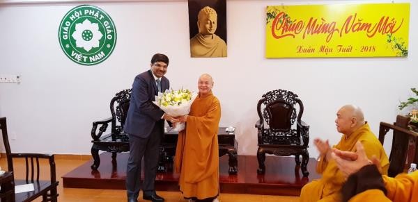 Ngài Tổng Lãnh sự khẳng định, mối quan hệ hữu nghị giữa Ấn Độ - Việt Nam đã có từ 2.000 năm trước. Ngài bày tỏ niềm tri ân về những đóng góp to lớn và hiệu quả của Giáo hội Phật giáo Việt Nam nói chung, cá nhân Hòa thượng Chủ tịch nói riêng trong việc nâng tầm mối quan hệ Đối tác chiến lược toàn diện Ấn Độ - Việt Nam.