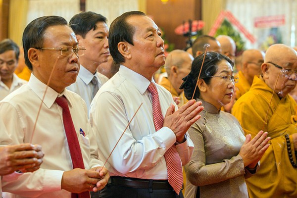 | Tại buổi tưởng niệm, các lãnh đạo, nguyên lãnh đạo Tp.HCM thắp nhang, tri ân Bồ Tát Thích Quảng Đức. |