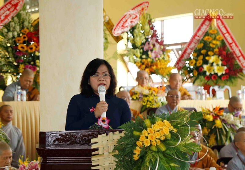NS.TN.Huệ Tâm dâng lời tưởng niệm của Ni giới Đồng Nai. Bà Nguyễn Hoà Hiệp phát biểu chúc mừng tới buổi lễ. Thay mặt cho lãnh đạo tỉnh, bà Hiệp ghi nhận những đóng góp của Ni giới Đồng Nai trong những năm qua thông qua các hoạt động xã hội, góp phần vào sự phát triển chung của tỉnh nhà, cùng xây dựng khối đại đoàn kết dân tộc.