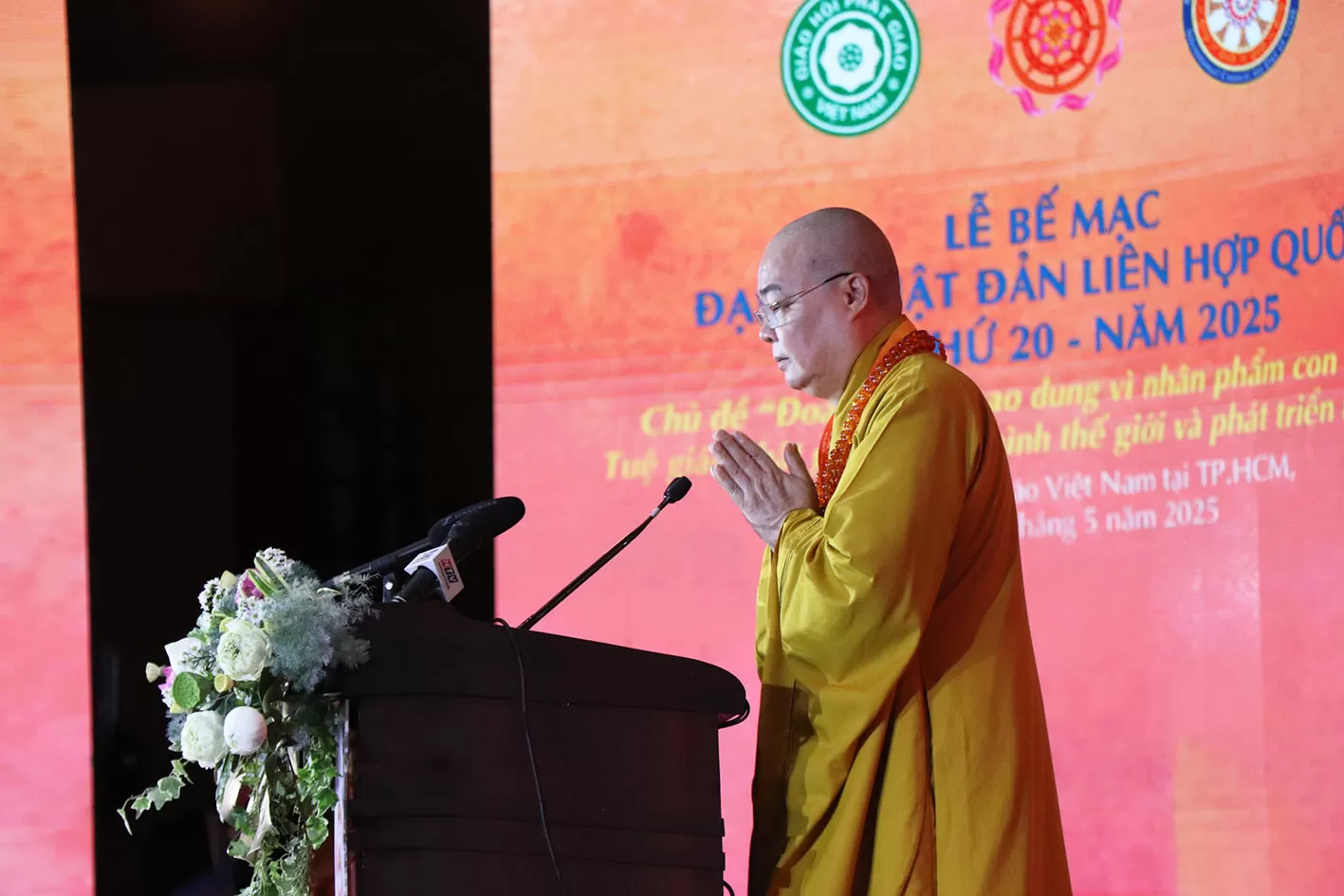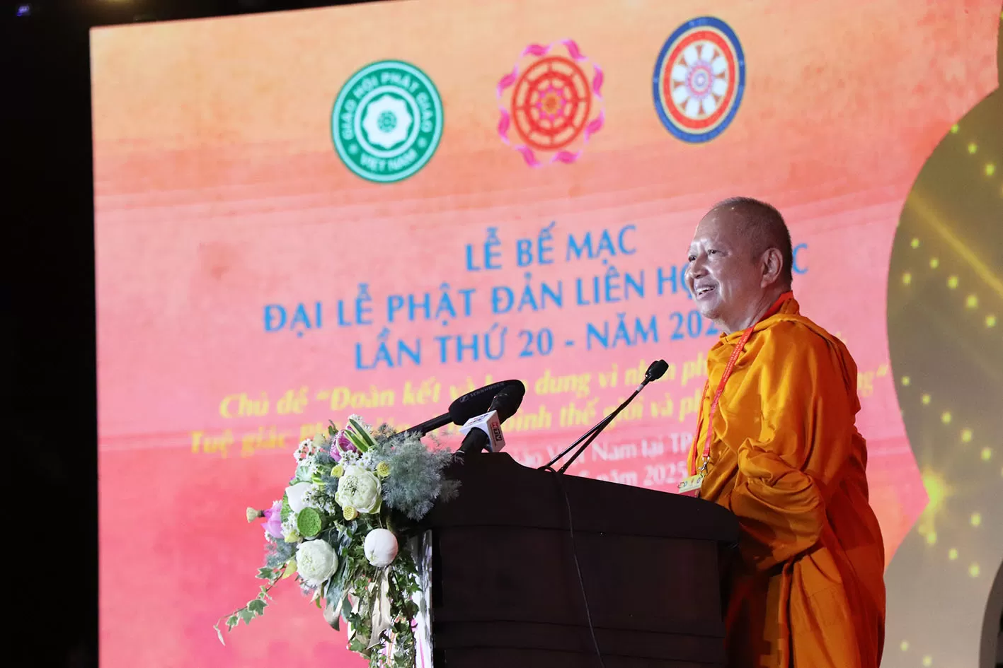 Để khép lại một mùa Đại lễ Vesak LHQ 2025 đầy thiêng liêng, TT. Thích Thanh Phong - Phó Chủ tịch HĐTS, Phó Chủ tịch, Tổng Thư ký Uỷ ban Tổ chức Đại lễ Vesak 2025 - thay mặt Ban Tổ chức Đại lễ tuyên đọc lời cảm tạ, gửi lời tri ân sâu sắc đến toàn thể Quý Lãnh đạo Ban Tổ chức Đại lễ Vesak LHQ 2025, Chư Tôn đức HĐCM, HĐTS và quý Đại biểu, khách mời 85 quốc gia và BTS 63 tỉnh/thành trên cả nước. Cũng như bày tỏ lòng biết ơn đối với Lãnh đạo Nhà nước đã luôn hỗ trợ các hoạt động của GHPGVN; các Doanh nghiệp, tổ chức, cá nhân đã luôn đồng hành và hỗ trợ mang đến một mùa Đại lễ Vesak thành công, trang nghiêm, tốt đẹp.